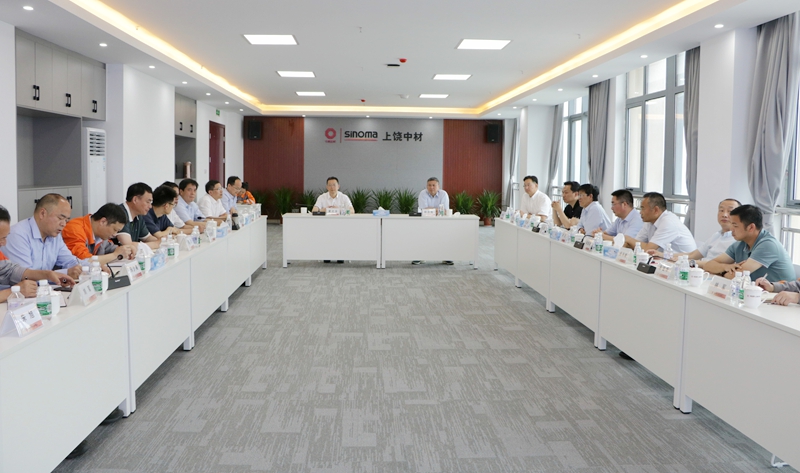 上饒中材黨委(wei)書記、執行董事(shì)吳新其代表公(gōng)司對印志松總(zong)裁一行緻以熱(rè)烈歡迎,并從公(gong)司基本情況、智(zhì)🤟能化、美麗📞工廠(chang)建設等重點工(gōng)作進展、“十四五(wu)”戰略謀劃、黨建(jian)及巡視整改工(gong)作等方面進行(hang)了彙報。